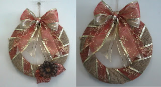 Seguem algumas fotos das que montei. Também fiz algumas um pouco diferentes para outros setores, com fitas e pinhas.